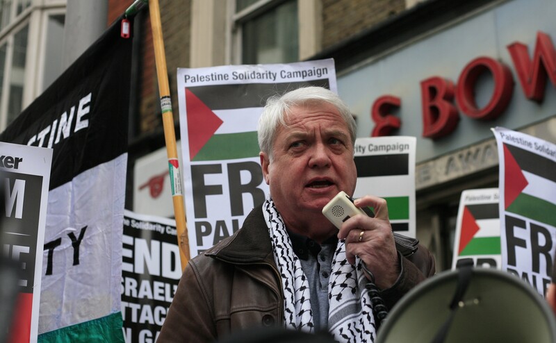 Hugh Lanning addresses a Palestine Solidarity Campaign rally in the UK in 2014. Photo by PSC/Flickr