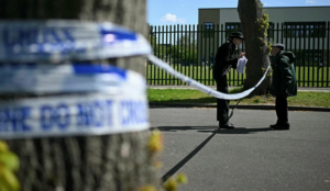 The scene of an arson attack at Kenton United Synagogue in Harrow, north-west London on 19 April 2026