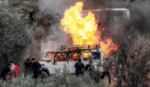 Vehicle set on fire by settlers near Nablus, northern West Bank, October 2025