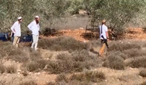 Israeli settlers in the olive grove in which the shooting took place, on Saturday (those photographed have no relation to the article).