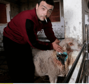 Mahmoud Daramin with an injured sheep