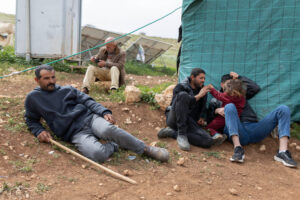 Residents of Khirbet Humsa in the Jordan Valley, a day after they were attacked by settlers, 13 March 2026