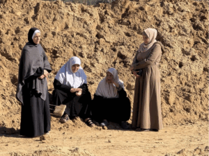 Fatima Salem waits outside anxiously, as rescue crews dig through the rubble of her family’s home in Gaza City on December 15th. With bated breath, she clings to the hope that all 60 of her family members – brothers, sisters, nieces, nephews, and grandchildren – who were buried under the rubble after an Israeli airstrike targeted their building, will be rescued.
