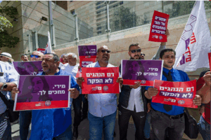 Bus drivers with Koach LaOvdim protest against violence directed at them outside the Transport Ministry in Jerusalem, 29 April 2025