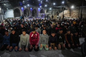 The prayers took place while Israeli reconnaissance aircraft flew overhead, disturbing the calm. Worshippers nonetheless directed prayers and supplications to God for “relief from suffering, an end to hardship, and improved conditions for residents of the Strip,” according to Anadolu Agency.