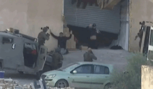 Image grab obtained from Palestine TV footage, shows two Palestinian men raising their hands in apparent surrender before Israeli forces, moments before being seemingly shot by soldiers during a military operation, November 2025